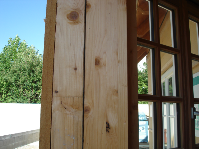 Die Deckenbalken werden mit Holzverkleidung belegt. Der englische Erker nimmt langsam Form an.